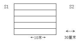 ①場(chǎng)地器材:10米長(zhǎng)的直線跑道若干,在跑道的兩端線(S1和S2)外30厘米處各劃一條線(圖1)。木塊(5厘米×10厘米)每道3塊,其中2塊放在S2線外的橫線上,一塊放在S1線外的橫線上。秒表若干塊,使用前應(yīng)進(jìn)行校正。
