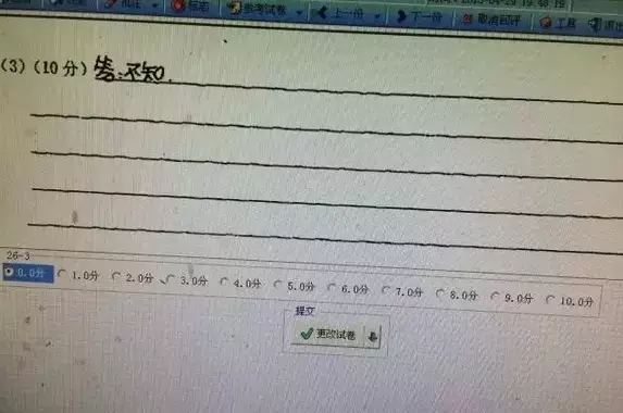 問題:部分考生匆忙答題,答錯(cuò)了一段,便用刪除符號大面積刪掉。