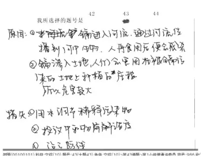 例如下卷,考生涂的是43題題號,答的卻是42題的內(nèi)容,只能得零分。