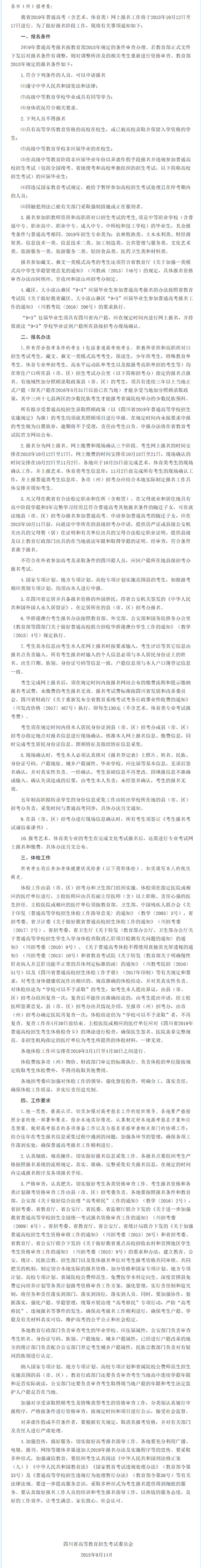 關(guān)于做好四川省2019年普通高考報(bào)名工作的通知