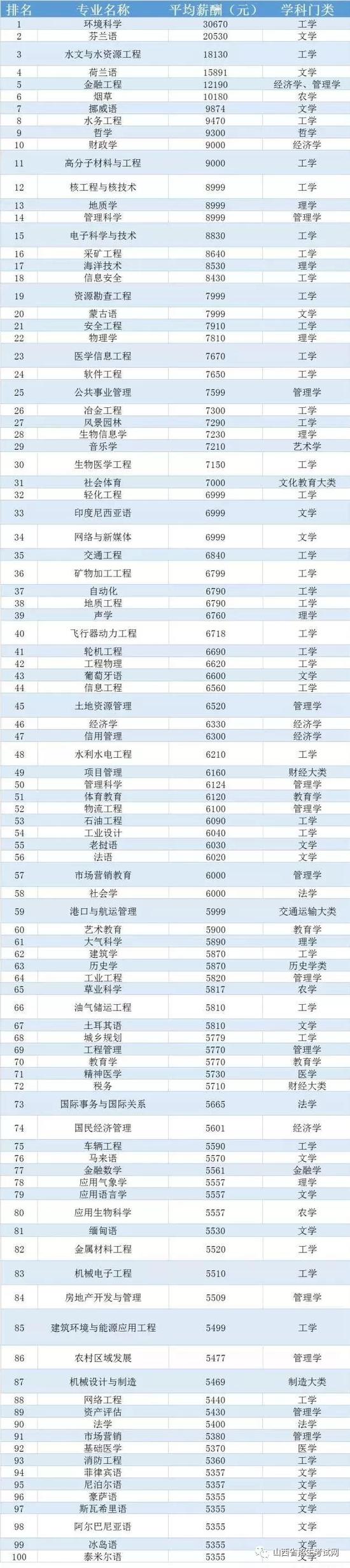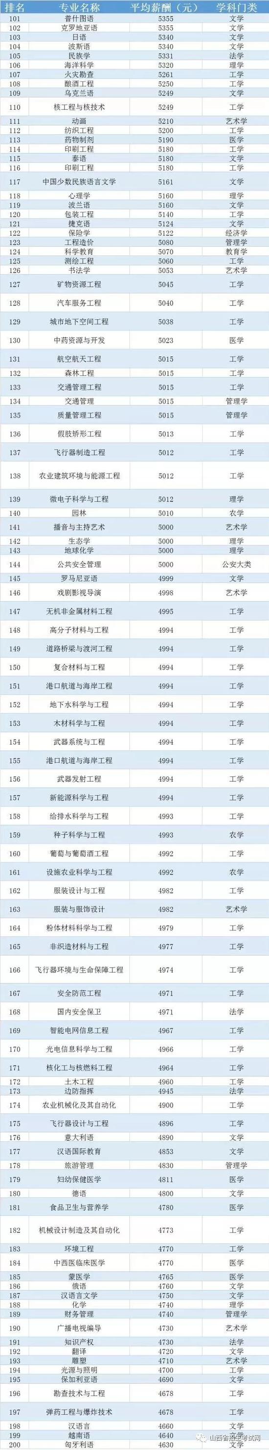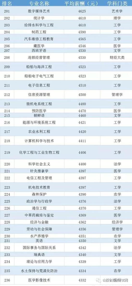 中國236個大學(xué)專業(yè)平均薪酬排行榜