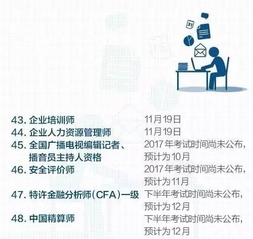【收藏】2017下半年48項職業(yè)資格考試時間表,大部分含金量高的都在這里啦!
