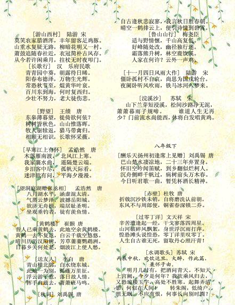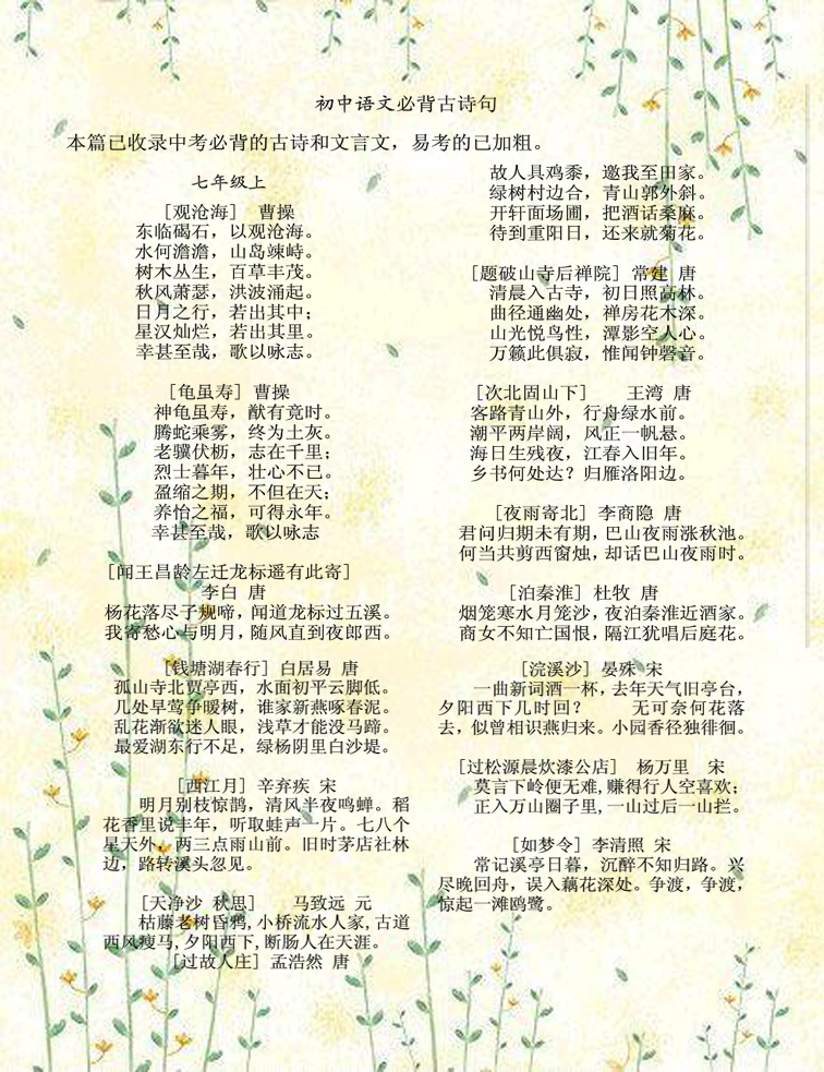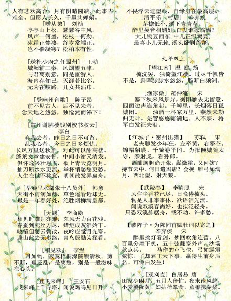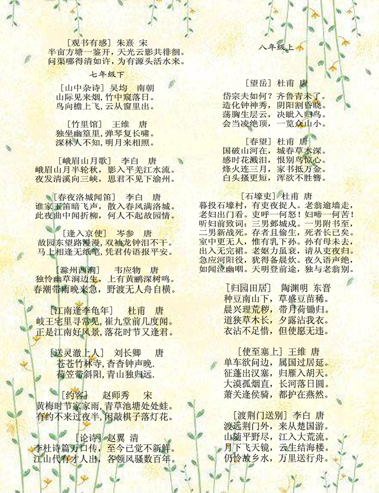 【知識(shí)盤點(diǎn)】三年初中語文必備古詩(shī)詞