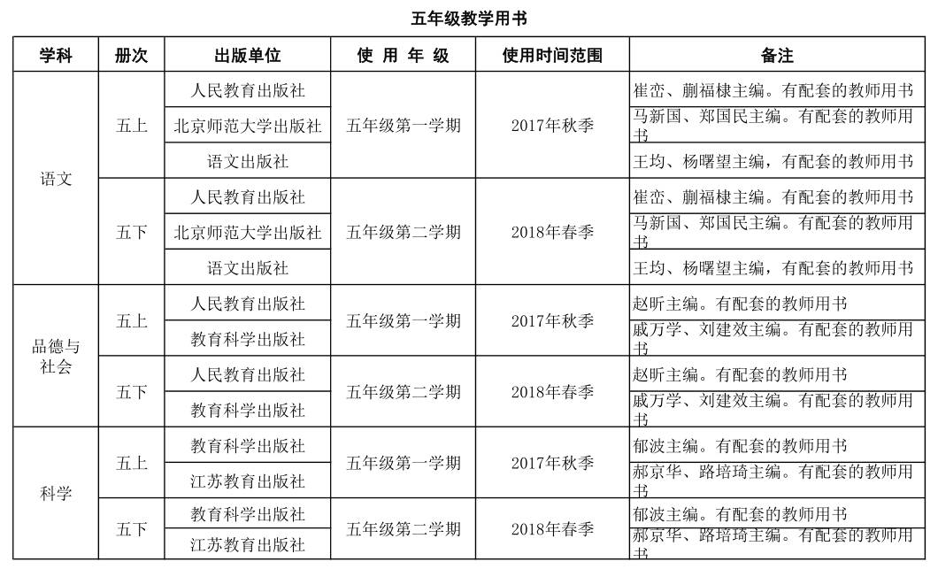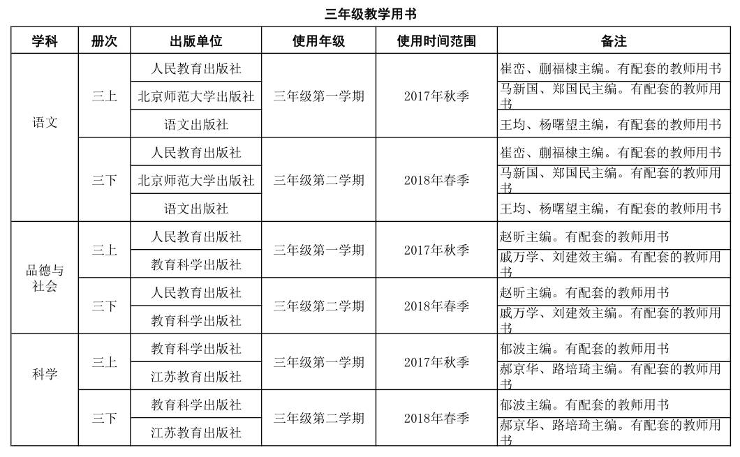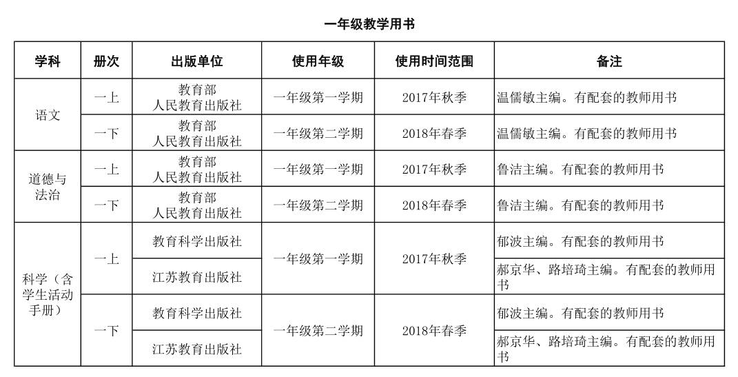 二、關(guān)于小學(xué)科學(xué)教學(xué)用書(shū)從2017年秋季學(xué)期起,小學(xué)科學(xué)課程起始年級(jí)調(diào)整為一年級(jí)。因教育部修訂審查工作尚未全部結(jié)束,小學(xué)一年級(jí)沿用各地原選用出版社出版的小學(xué)科學(xué)教材,不得更換其他版本。