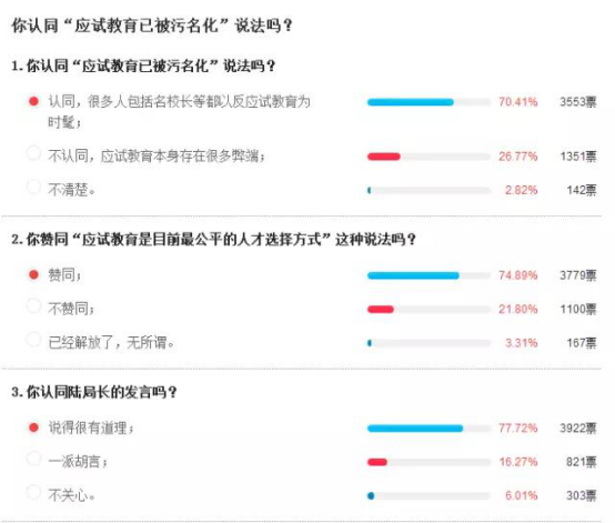 以下一組鳳凰網(wǎng)對(duì)于應(yīng)試教育相關(guān)調(diào)查數(shù)據(jù),僅供參考,僅供家長深思!